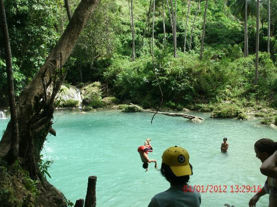 Located 2 km north of the town of Lazi, Cambugahay Falls is one of the attractions in Siquijor Island. It consists of cascading multi-tiered waterfalls, with fresh and clean warm water run-off, coming from natural springs, watersheds and small rain forests of the higher mountains. These waters then snake about 3 kilometers downstream, creating many beautiful swimming lagoons and little rapids along the way before it empties into Lazi Bay.